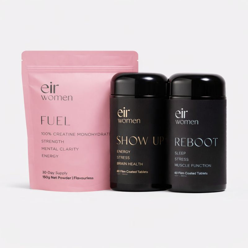 Eir is made by women over 40, for women over 40 — developed with leading hormone health experts and grounded in the lived experience of midlife. Every formula is crafted with clinically studied ingredients at effective doses, and designed to support what matters most: energy, mood, metabolism, digestion, sleep, and stress resilience. No fluff. No filler. Just supplements that work with your body, not against it.